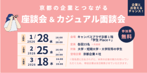 〈終了しました〉京都の企業とつながる「一次選考マッチング会」参加学生募集!オフライン交流会就活対策終了しました〈終了しました〉京都の企業とつながる「一次選考マッチング会」参加学生募集! 2025/10/31