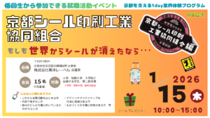 〈終了しました〉京都を支える1day業界体験プログラム「もしも世界からシールが消えたなら…(京都シール印刷工業協同組合)」参加者募集のお知らせ終了しました〈終了しました〉京都を支える1day業界体験プログラム「もしも世界からシールが消えたなら…(京都シール印刷工業協同組合)」参加者募集のお知らせ 2026/1/9